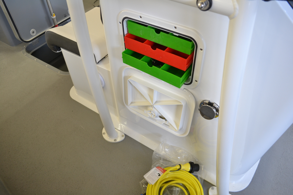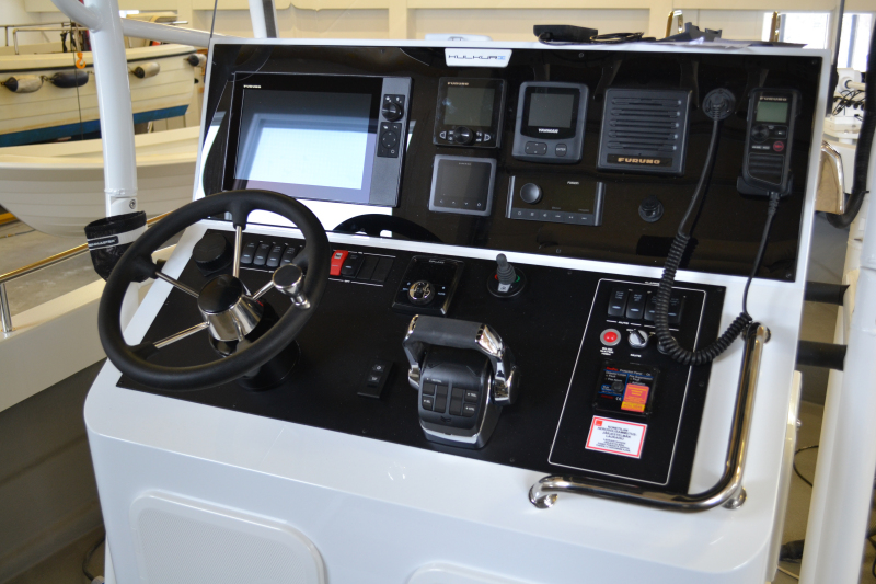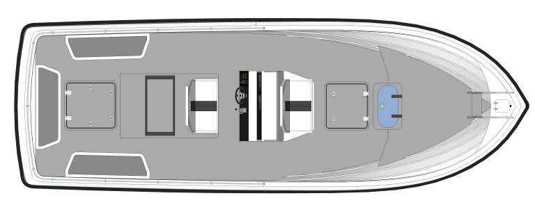 Iso ohjauspulpetti ja T-top antavat suojaa merellä liikuttaessa. Ohjauspulpetissa on hyvin tilaa navigointilaitteille sekä runsaasti säilytystilaa pienemmälle tavaralle.