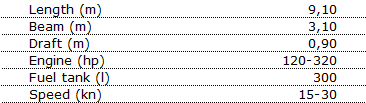 Kulkuri 31 is a safe and fast workboat for professional use. Its large and safe open deck space enables the boat being used for fishing, diving or transporting big cargoes.